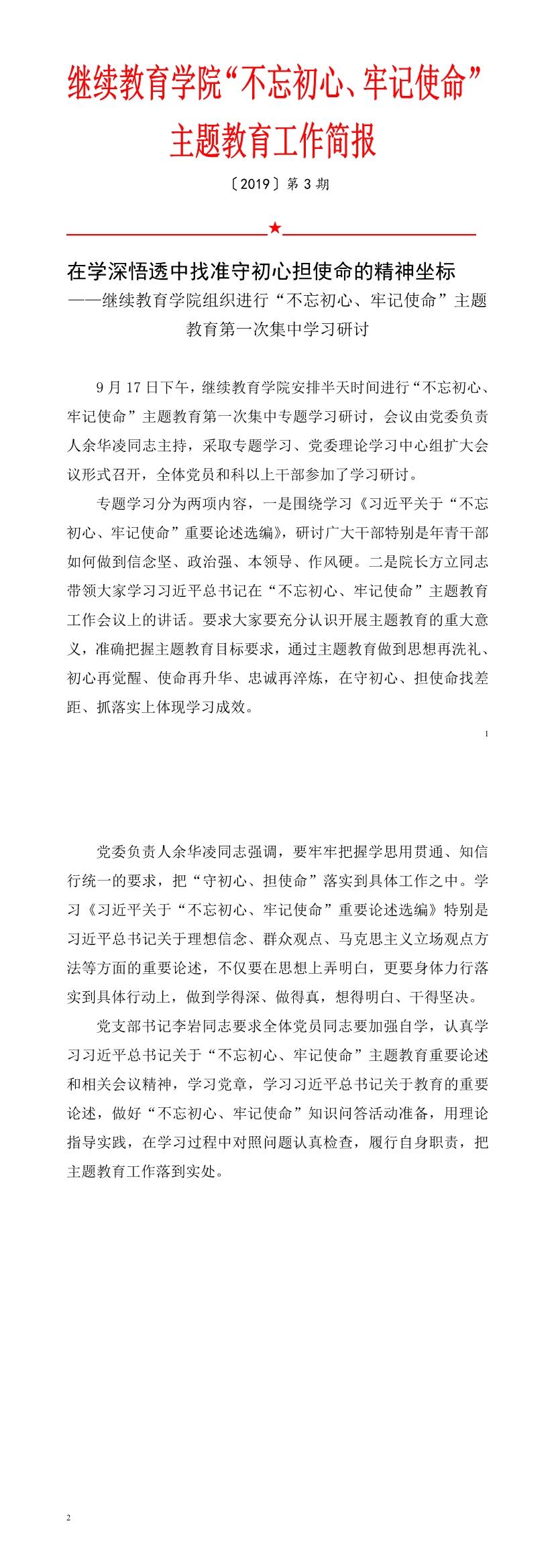 继续教育学院“不忘初心、牢记使命”主题教育工作简报〔2019〕第3期