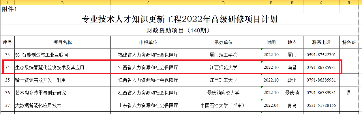 近日,国家人力资源和社会保障部下发了《人力资源社会保障部办公厅关于印发专业技术人才知识更新工程2022年高级研修项目计划的通知》(人社厅发〔20226号),我校继续教育学院、国家级专业技术人员继续教育基地组织申报的“生态系统智慧化监测技术及其应用”高级研修班经江西省人社厅推荐,成功入选该项目计划,并获得国家财政资助。